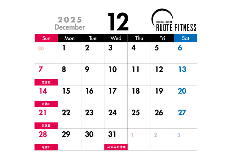 【2025年12月の営業予定】(京都市左京区・丸太町のパーソナルトレーニングジム)